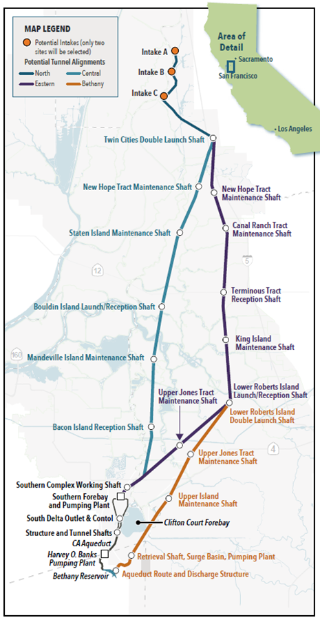 Late last month (July) the California Department of Water Resources (DWR) released its long-awaited environmental impact report (EIR) for the “Single Under-the-Delta Tunnel.” It reflects Governor Newsom’s desire to create his version of Governor Jerry Brown II’s “Twin Tunnels” proposal to transport Sacramento River water to the State Water Project contractors (and perhaps others) in areas south of the San Joaquin/Sacramento River Bay/Delta.