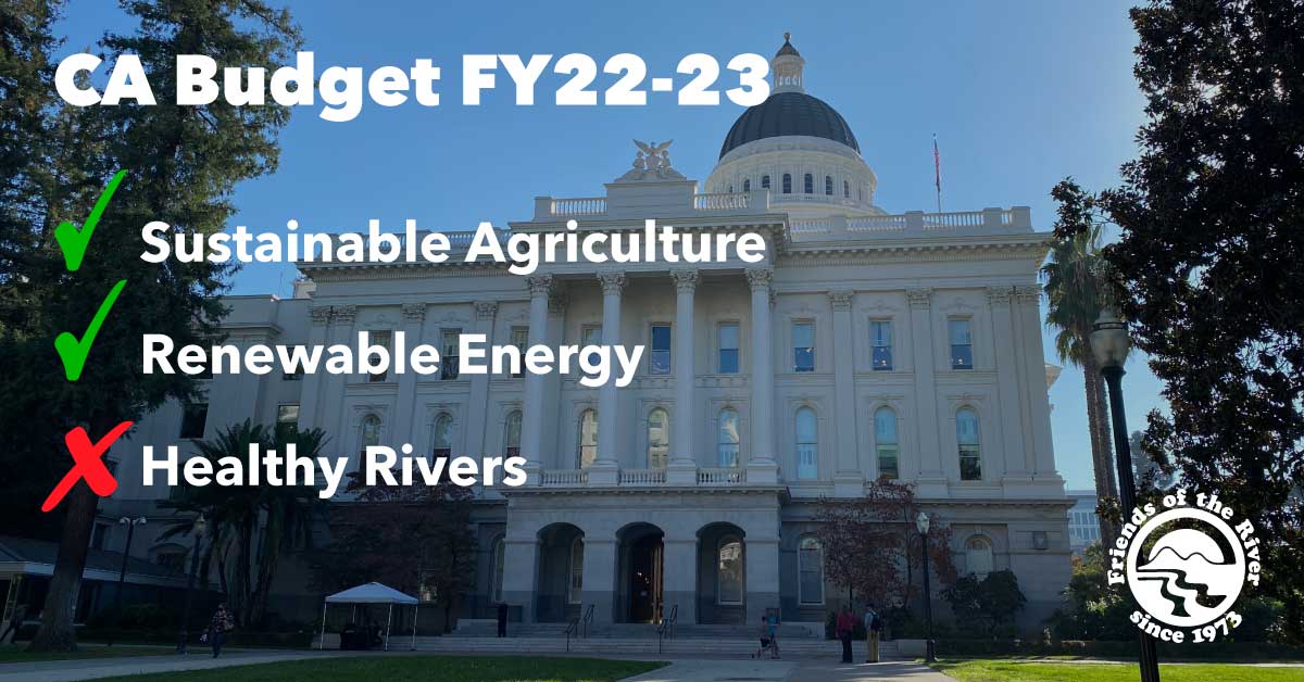Budgets are a statement of values, and this proposal falls short. But there was some reason to take hope. Secretary Crowfoot acknowledged that California Water Management is always a “work in progress,” and we could not agree more. While the proposal included historic funding for a variety of water issues, it still lacks a holistic #ClimateChange driven water agenda. Friends of the River urges our state leaders to take action and review our recommendations for prioritizing 21st century water solutions and healthy rivers, not more deadbeat dams. We will keep pushing for a better budget as the season progresses.